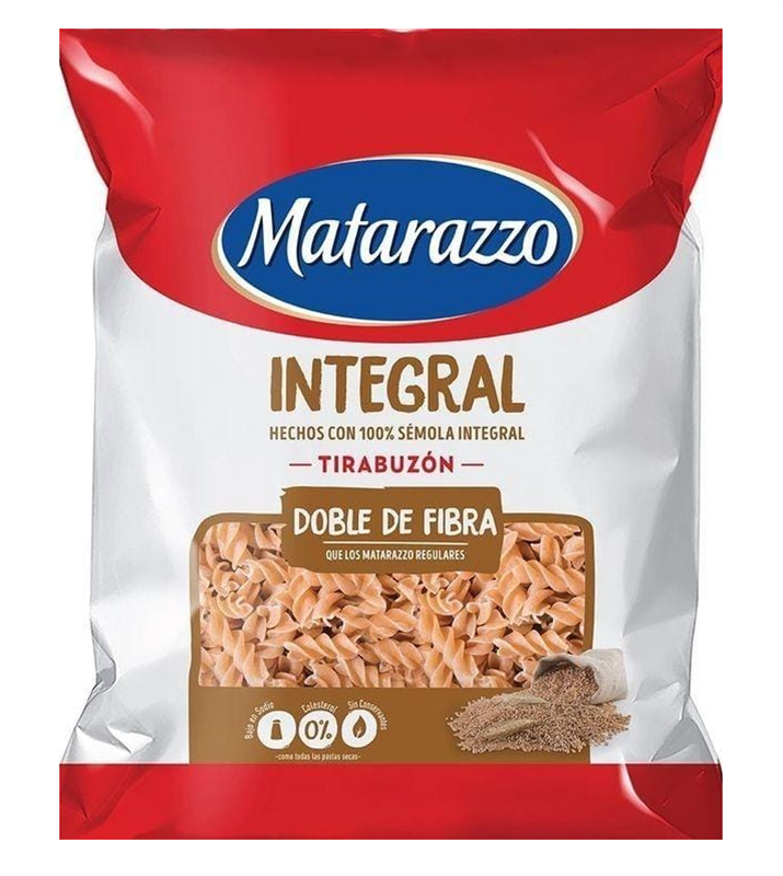 Fideos 100% Semola Integral MATARAZZO: Tirabuzon $3,000